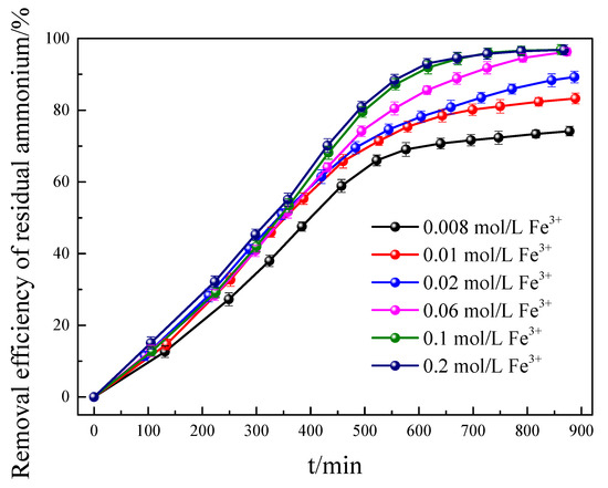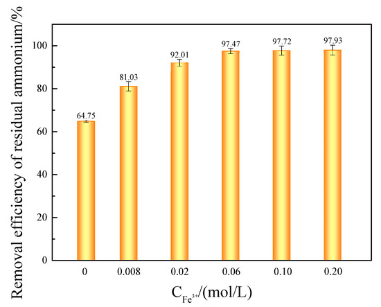 3.1.1. Effect of the Ferric Salt Concentration on Ammonium Removal Efficiency
