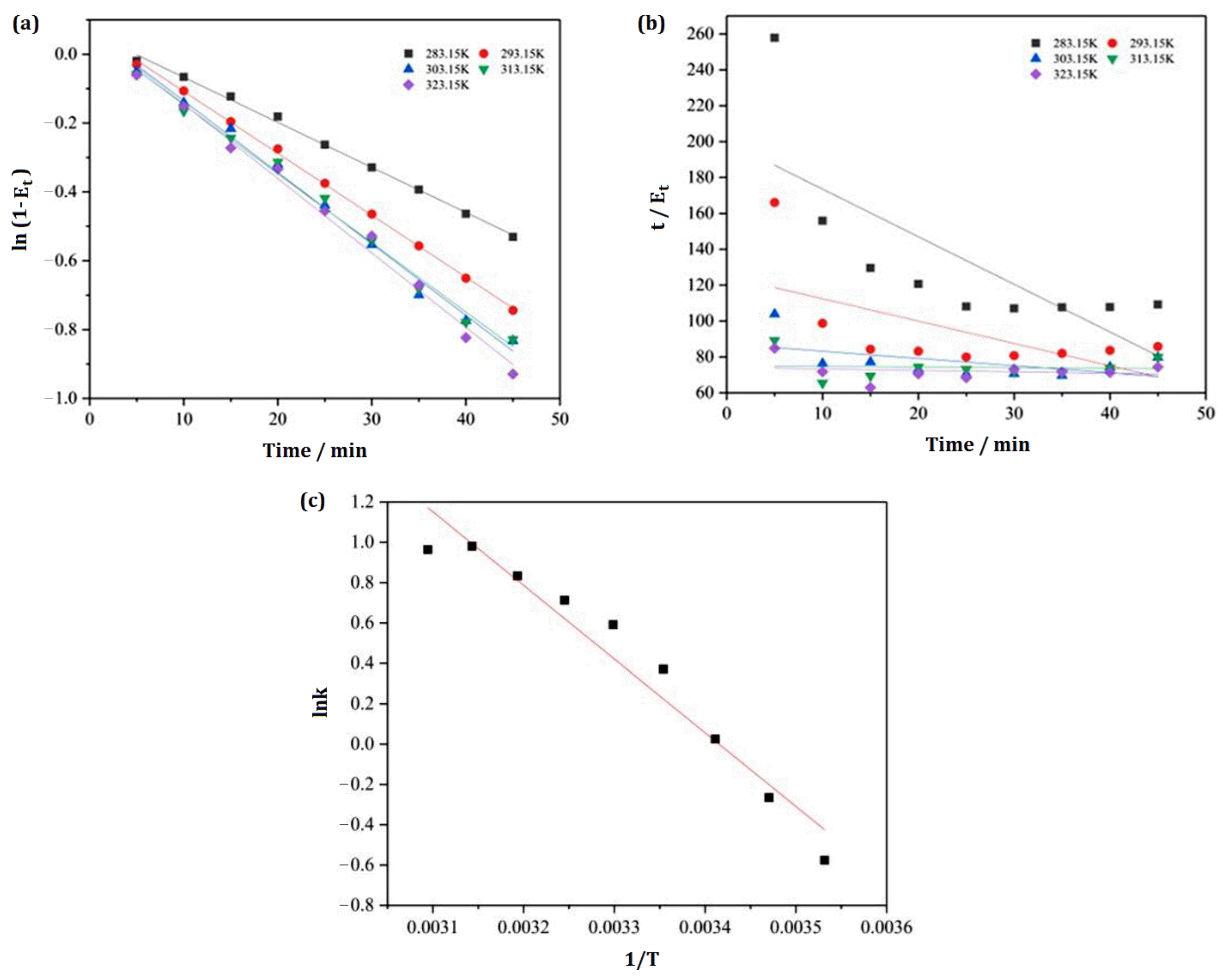 | T/K | First-Order Kinetics | Second-Order Kinetics | ||||