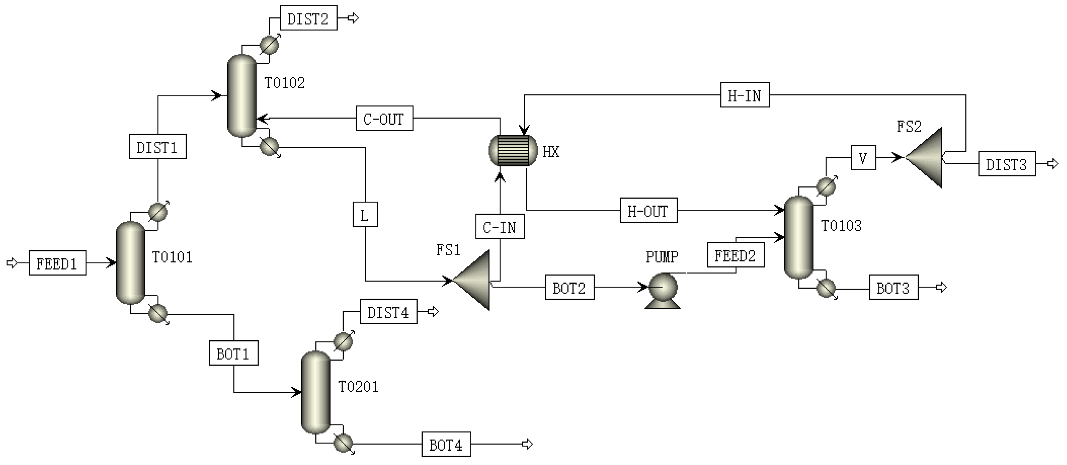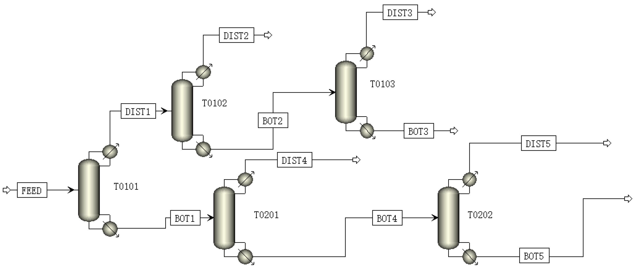 | Matter | DIST1 (kg/h) | BOT1 (kg/h) | BOT2 (kg/h) | DIST3 (kg/h) | BOT4 (kg/h) | BOT5 (kg/h) |