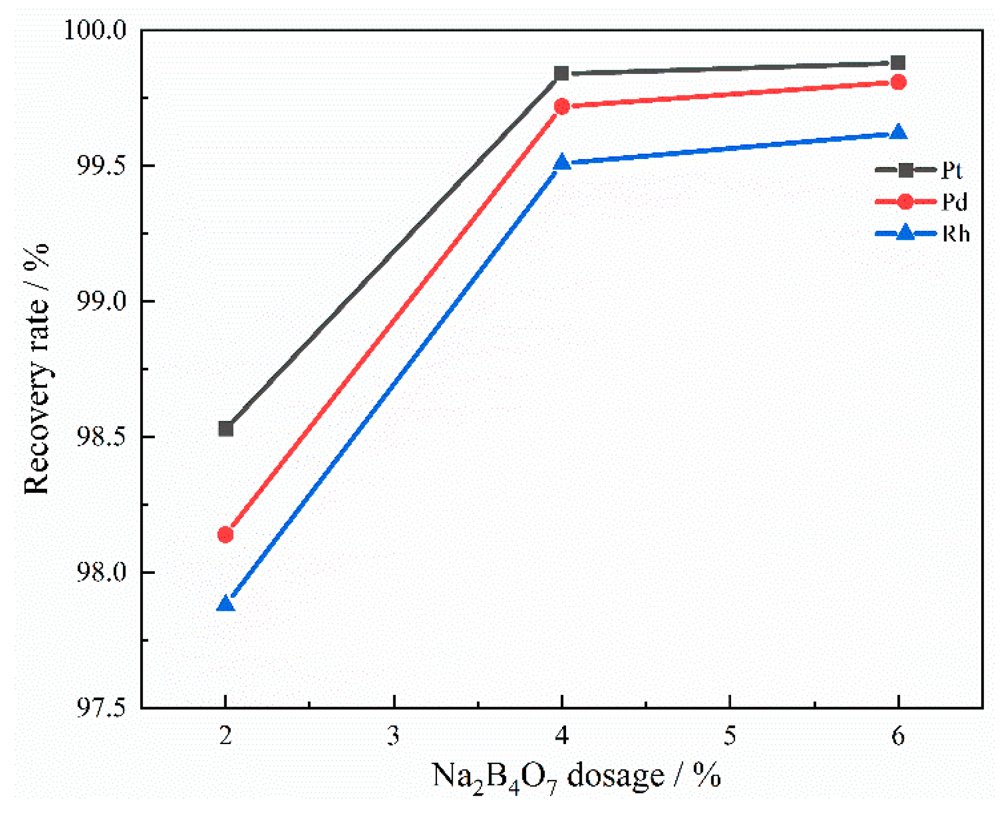 Figure 11. Influence of Na2B4O7 dosage on recovery rate.