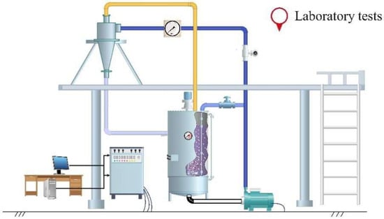 To explore the classification behavior of particles in the hydrocyclone and to verify the accuracy of the numerical analysis, laboratory experiments were conducted. First, suitable experimental materials were selected, maintaining the average particle size of around 25 µm for the fine particles, with the specific particle size distribution shown in Table 3. An experimental setup was constructed, as illustrated in Figure 14. The experimental setup mainly consists of a high-pressure plunger pump, a variable frequency drive, a feed cylinder, a pressure gauge, a flow meter, and various piping systems. To maintain the continuity of the experiments, the material from the overflow pipe and the underflow material were fed back into the feed cylinder to form a closed-loop circulation. After ensuring the system operates normally, samples of the feed, overflow, and underflow materials were collected separately for each of the three vortex finder configurations (single, double, triple). For each configuration, three parallel experiments were conducted under the same operating conditions (inlet velocity 5 m/s, mass concentration 17.5%), and the final results were averaged to reduce random errors (relative standard deviation < 3%). The final measurement results were averaged to reduce experimental errors. Finally, a high-precision Malvern laser particle size analyzer was used for measuring particle size to obtain the classification performance of the hydrocyclone.