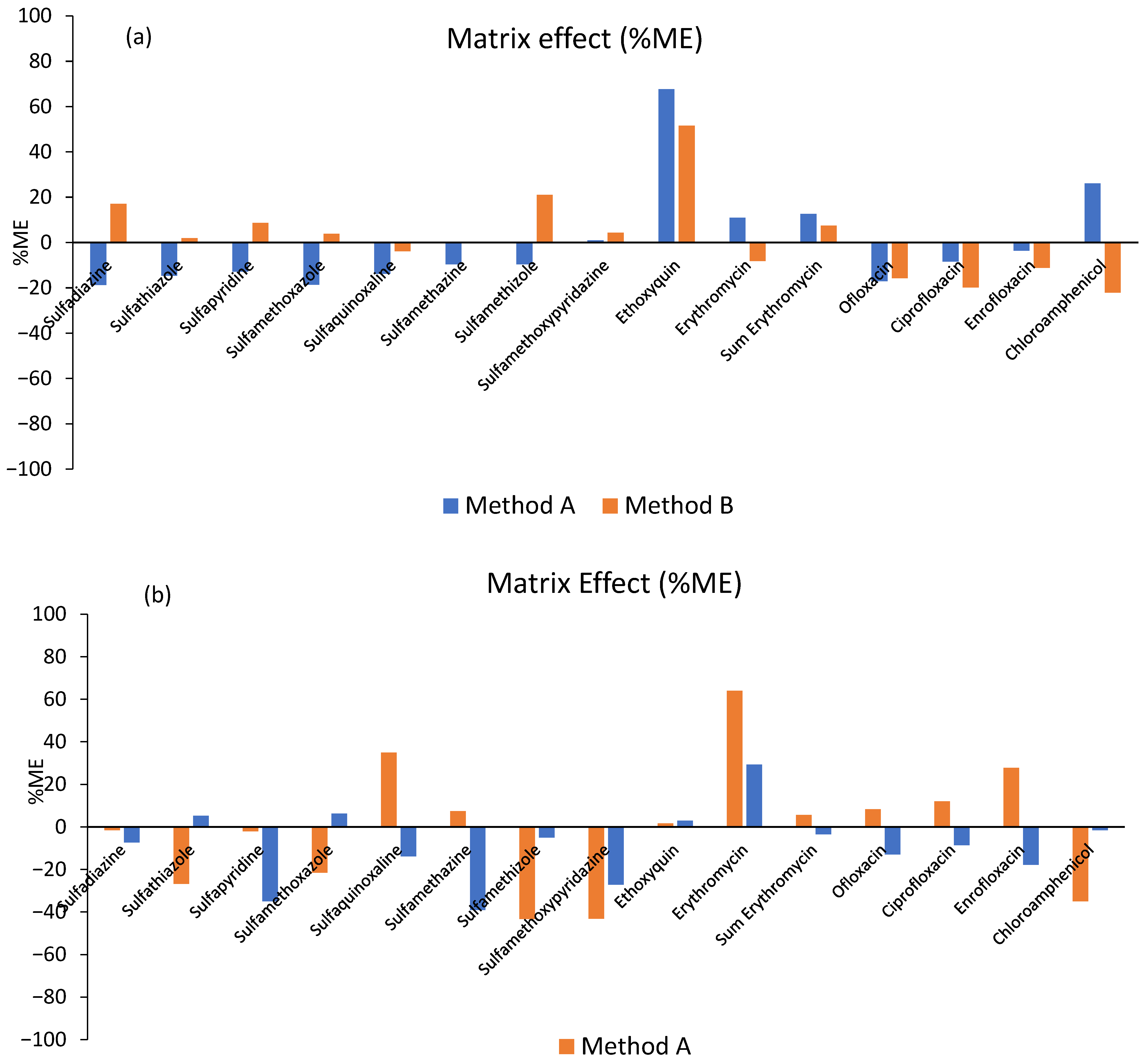 | Sulfamethoxypyridazine | 66 | 88 | 93 | 10–500 | 0.9955 | 2.2 | 7.1 | 8 | 4.9 | 3.5 | 6 | 3.1 | 2.7 |