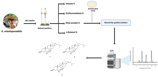 Schematic representation of bioactivity-guided isolation of G. orientispectabilis.