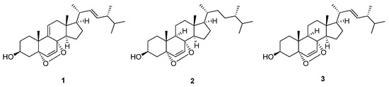 - Zhabinskii, V.N.; Drasar, P.; Khripach, V.A. Structure and biological activity of ergostane-type steroids from fungi. Molecules 2022, 27, 2103. [Google Scholar] [CrossRef] [PubMed]