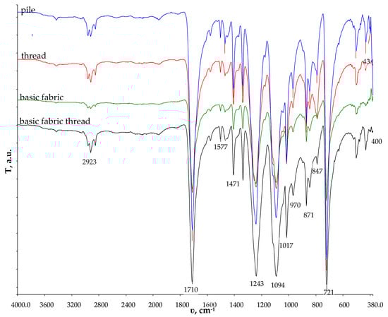 FTIR–ATR of the structural units of double-sided weft plush polyester fabric.