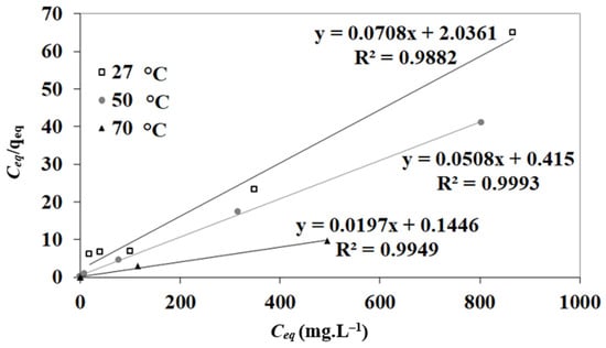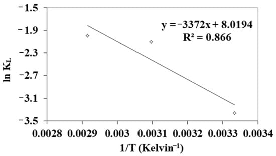 | T (°C) | N (mg g−1) | KL (L mg−1) | R2 |