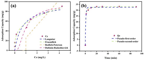 | k1 (min−1) | qe (mg·g−1) | R2 | k2 (L·mg−1) | qe (mg·g−1) | R2 |