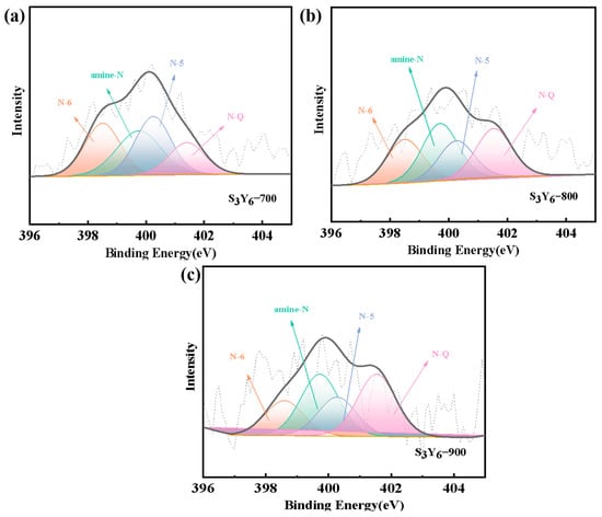 N1s spectra of (a) S3Y6−700; (b) S3Y6−800; and (c) S3Y6−900.