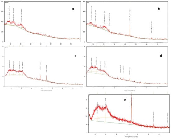 XRD of apple pectin extracted by conventional heating method (a), citric acid extraction (b), organic acid mixture (c), microwave extraction (d) and ultrasound extraction (e) methods [85].