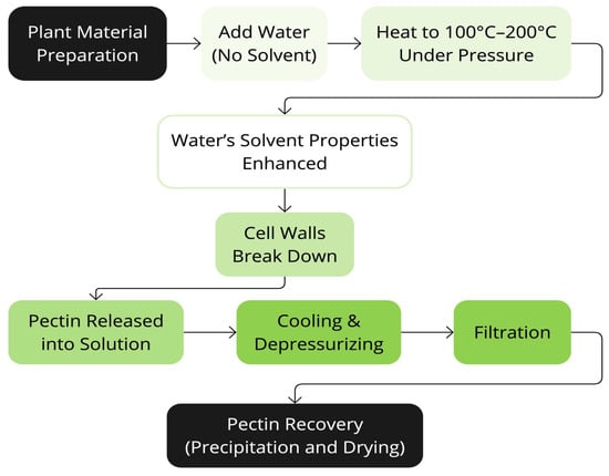 - Basak, S.; Annapure, U.S. The potential of subcritical water as a “green” method for the extraction and modification of pectin: A critical review. Food Res. Int. 2022, 161, 111849. [Google Scholar] [CrossRef] [PubMed]