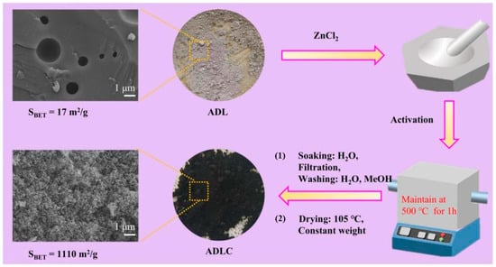 Process route for the synthesis of lignin-based porous carbon (ADLC) by the ZnCl2 activation method [].