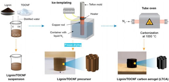 Process route for the preparation of lignin-based carbon aerogels (LTCAs) by the ice template method [].