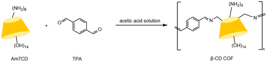 Synthetic route to β-cyclodextrin covalent organic framework (β-CD COF) [60].