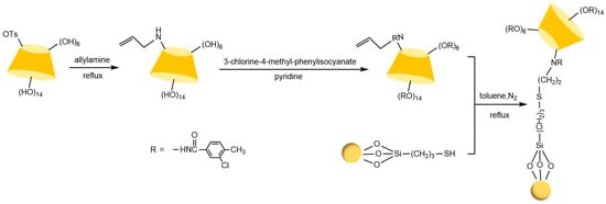 Synthesis route of ether-bonded MDHB-CD chiral stationary phase [80].