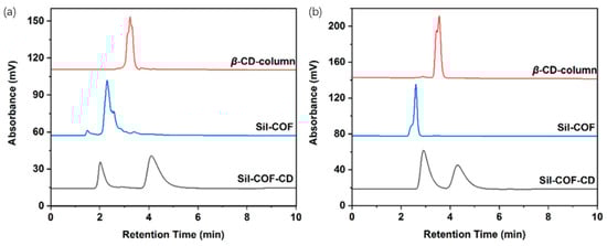 - Yuan, C.; Wang, Z.; Xiong, W.Q.; Huang, Z.F.; Lai, Y.L.; Fu, S.G.; Dong, J.Q.; Duan, A.H.; Hou, X.D.; Yuan, L.M.; et al. Cyclodextrin Incorporation into Covalent Organic Frameworks Enables Extensive Liquid and Gas Chromatographic Enantioseparations. J. Am. Chem. Soc. 2023, 145, 18956–18967. [Google Scholar] [CrossRef]