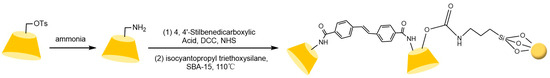 Synthesis route of phenylcarbamoyl-β-CD modified mesoporous silica particles CSP [89].