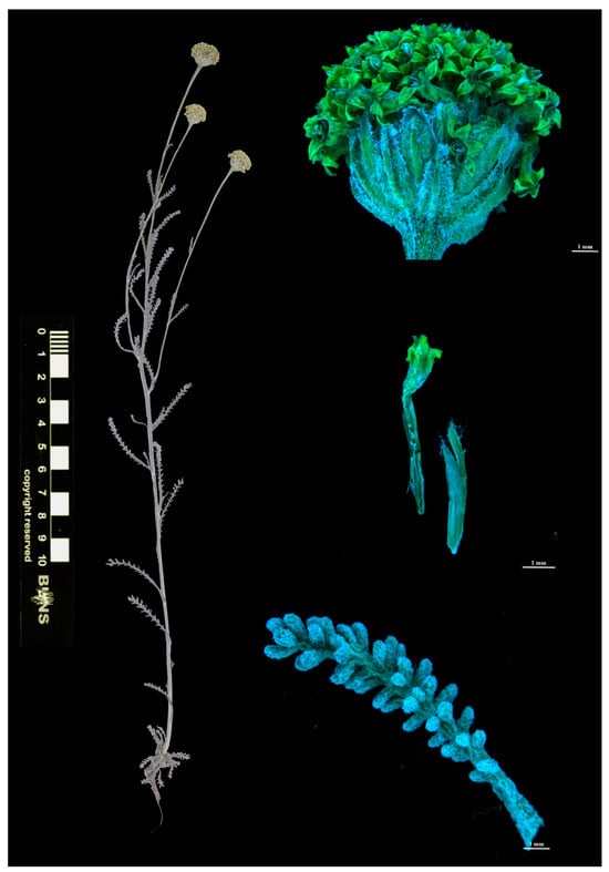 - El-Sahhar, K.F.; Nassar, D.M.; Farag, H.M. Morphological and anatomical studies of Santolina chamaecyparissus L. (Asteraceae). I. Morphological characteristics. Res. J. Agric. Biol. Sci. 2011, 7, 294–302. [Google Scholar]