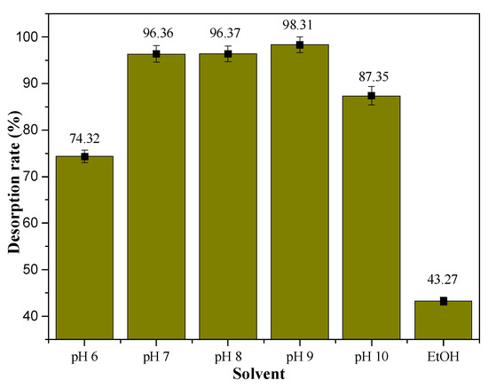 Mogroside V solution of 4 mg/mL was loaded to the SPE column with 20 mg SiO2-GP-APBA. Each 5 mL effluent was collected for analysis until adsorption saturation. Then, ethanol aqueous solutions at pH 6, 7, 8, 9, and 10 adjusted by NaOH were selected as the elution solvent, respectively. All experiments were repeated at least three times. The best desorption conditions were in the release of mogroside V from the crude extract of Siraitia grosvenorii.