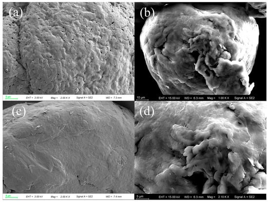 SEM images of PVC before (a) and after (b), and PET before (c) and after (d) ozonation pretreatment.