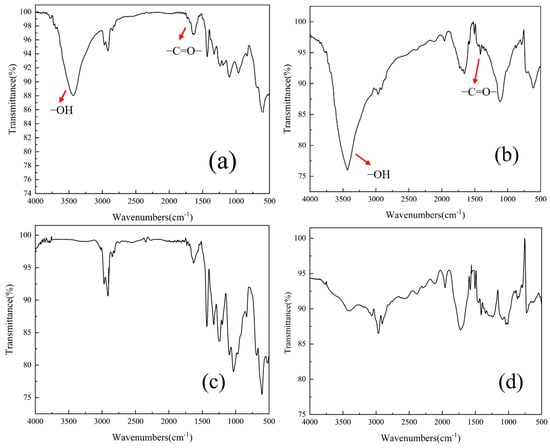 FT-IR spectroscopy analysis (Figure 8) revealed a significant enhancement in the intensity of surface hydroxyl (-OH) peaks for ozone-pretreated microplastics compared to pristine samples. Furthermore, FTIR analysis revealed the emergence of a carbonyl (C=O) absorption band at 1620 cm−1 specifically in ozonated polyvinyl chloride (PVC) microplastics [29,38]. After ozone pretreatment, the electronegativity of PVC and PET weakened, and the zeta potential values changed from −15 mV ± 2 mV and −20 mV ± 3 mV to −10 mV ± 3 mV and −11 mV ± 3 mV, respectively, which is conducive to coagulation [39].