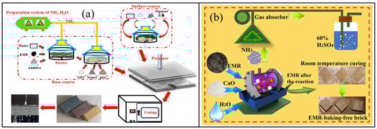 EMR contains significant amounts of soluble sulfate, which can stimulate volcanic ash materials to produce energy-efficient, unburned brick, autoclaved bricks, cement additives, and concrete additives, as shown in Table 6. The utilization of EMR in building materials is a key area of current research.