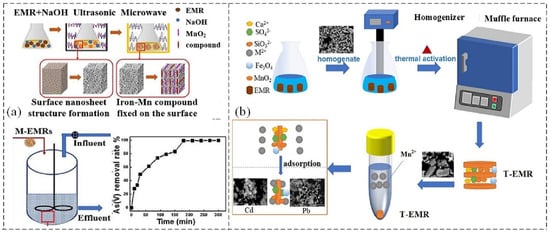 - Ma, M.; Du, Y.; Bao, S.; Li, J.; Wei, H.; Lv, Y.; Song, X.; Zhang, T.; Du, D. Removal of cadmium and lead from aqueous solutions by thermal activated electrolytic manganese residues. Sci. Total Environ. 2020, 748, 141490. [Google Scholar] [CrossRef] [PubMed]