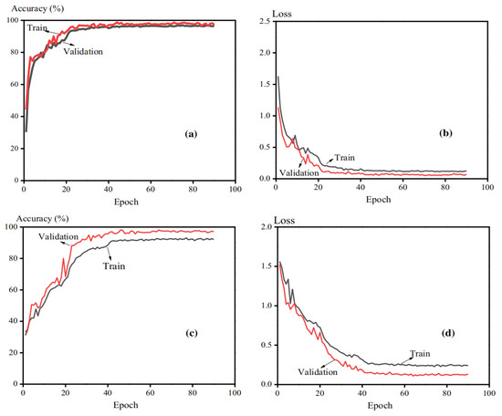 Deep learning effect on prediction of turbidity signal with (a) Mod-Dos for training accuracy, (b) Mod-Dos for training loss, (c) Mod-pH for training accuracy, and (d) Mod-pH for training loss [136].