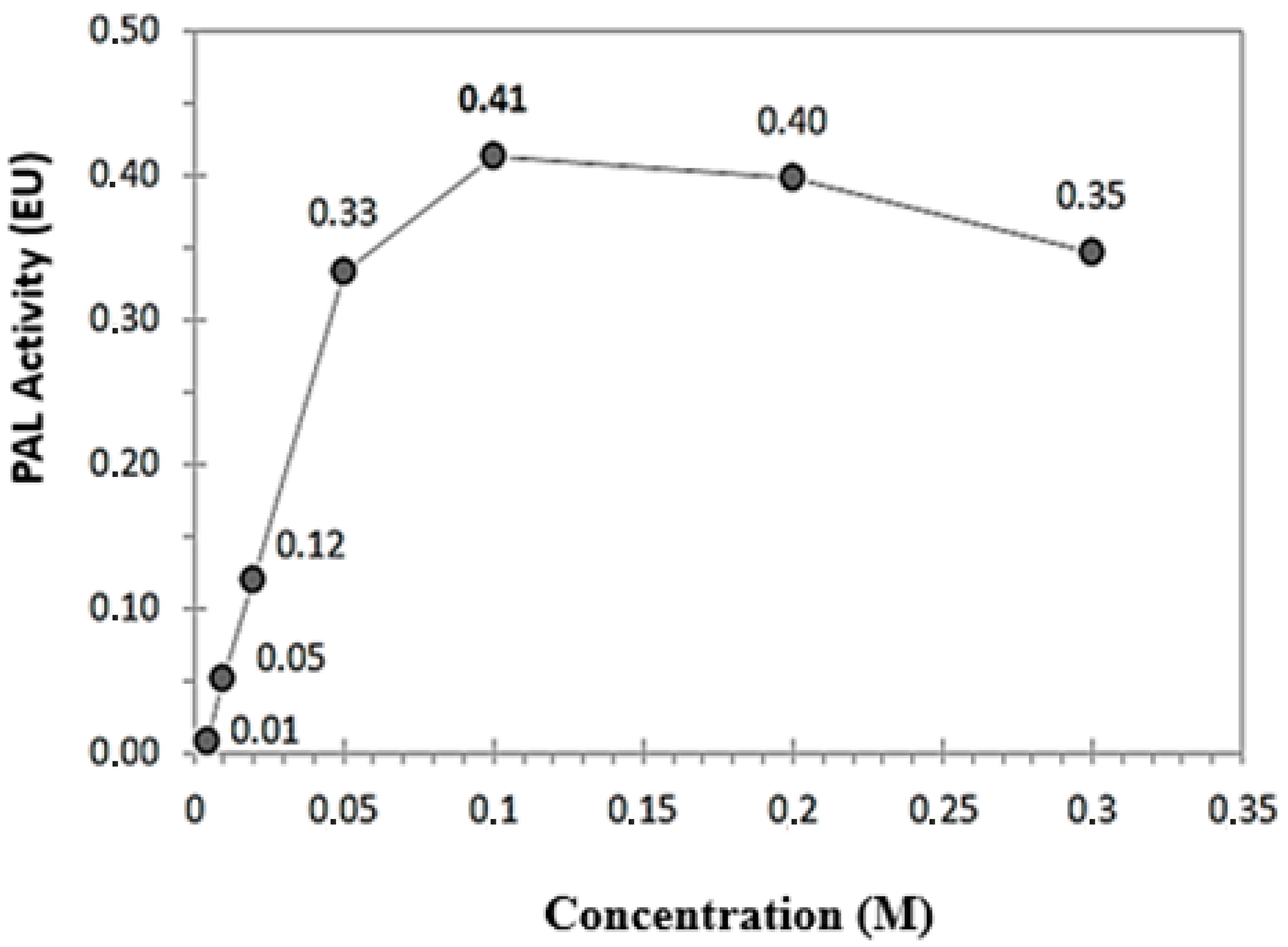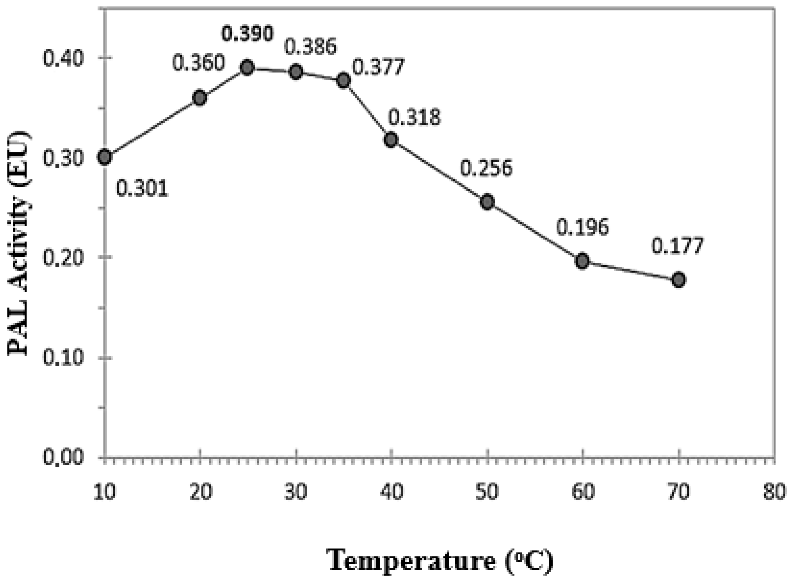 - Khan, N.U.; Vaidyanathan, C.S. A New Simple Spectrophotometric Assay of Phenylalanine Ammonia-Lyase. Curr. Sci. 1986, 55, 391–393. Available online: https://www.jstor.org/stable/24089938 (accessed on 1 August 2025).