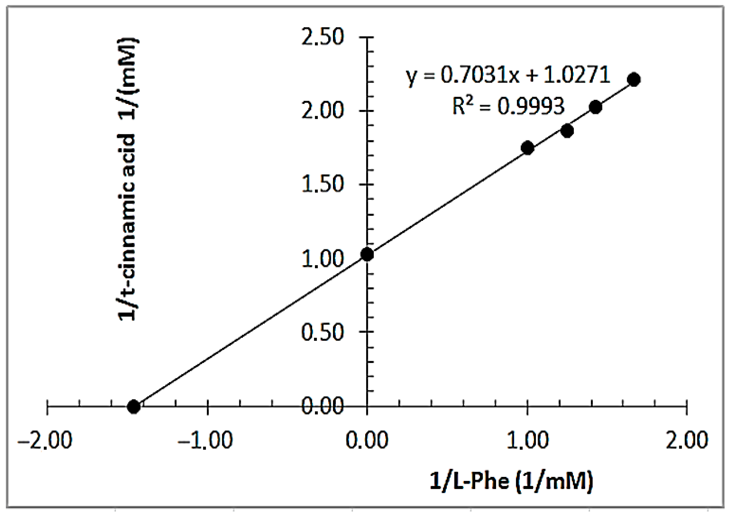 - El-Shore, H.M. Properties of Phenylalanine Ammonia-Lyase from Marrow Cotyledons. Plant Sci. 2002, 162, 1–7. [Google Scholar] [CrossRef]