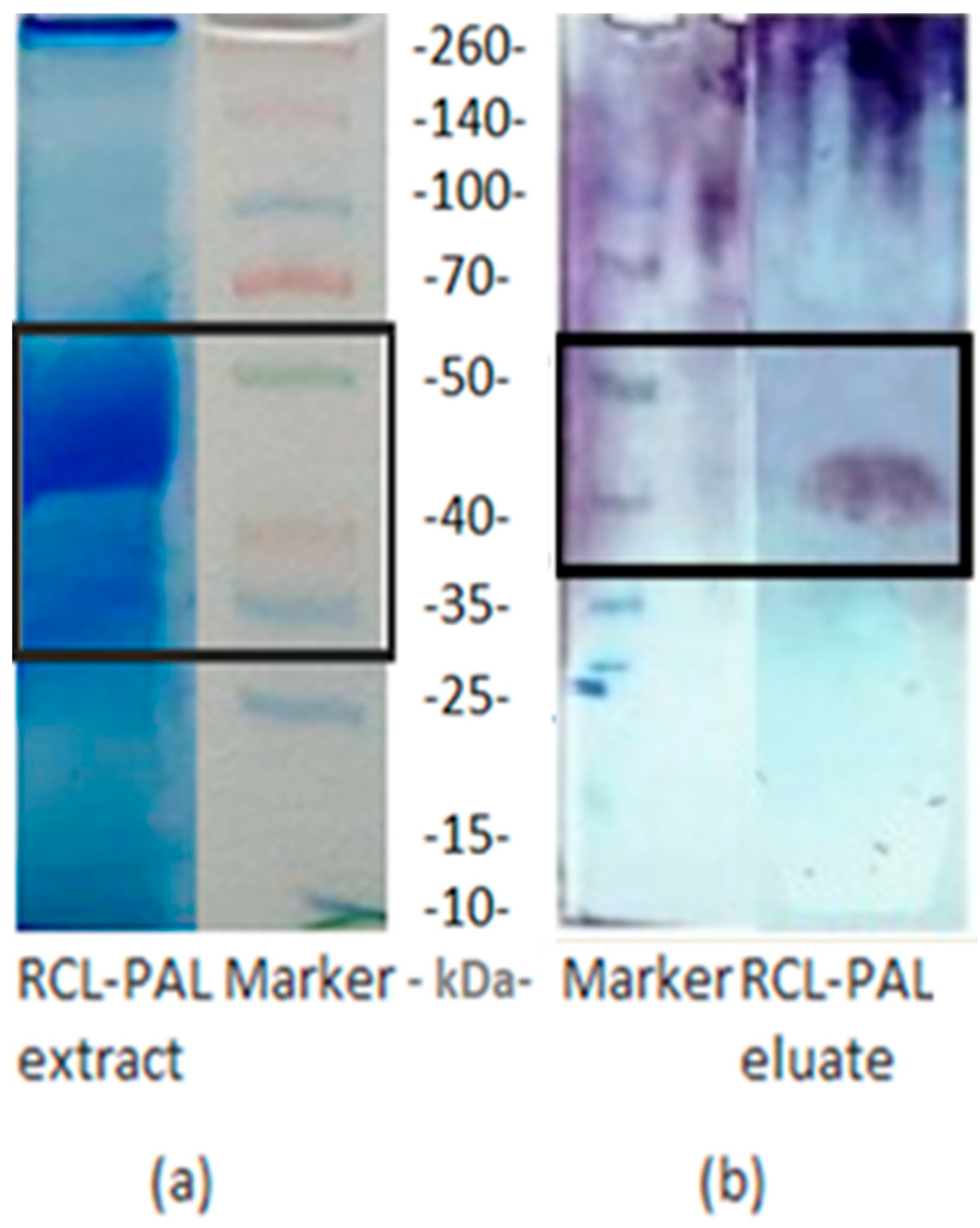 3.5. Purification of RCL-PAL by Affinity Chromatography