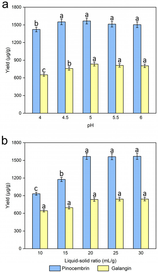 APA StyleZhao, R., Li, X., Bao, Y., Xu, W., Xu, C., Wang, R., Xia, T., Liu, T., & Ben, A. (2025). Semi-Pilot Scale Extraction of Pinocembrin and Galangin from Populus alba L. × berolinensis K. Koch via Enzymatic Pretreatment and Ultrasonication. Separations, 12(9), 249. https://doi.org/10.3390/separations12090249