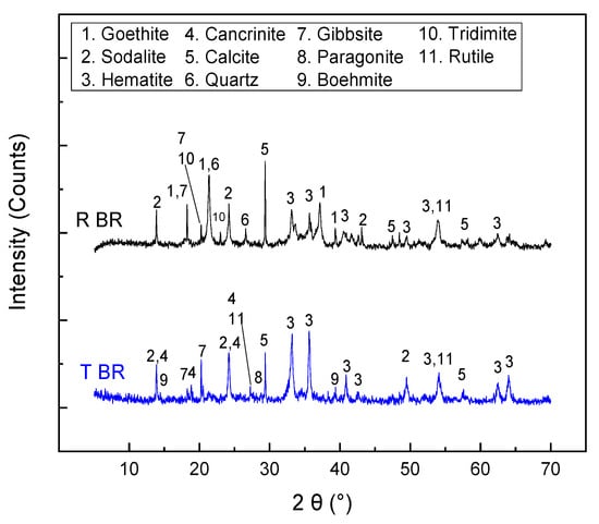 X-ray diffraction patterns of the initial bauxite residues (RBR and TBR).