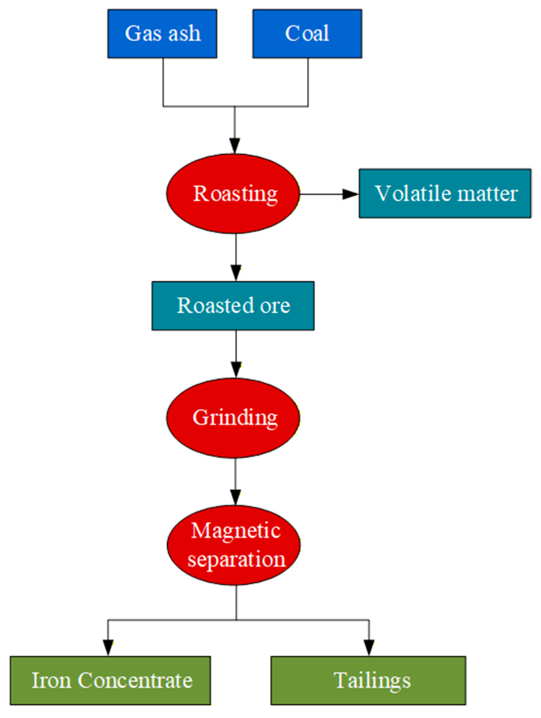 - Yi, G.; Shi, Y. Fundamental properties and magnetic roasting of blast fureace dust. China Metall. 2016, 26, 29–34. [Google Scholar]