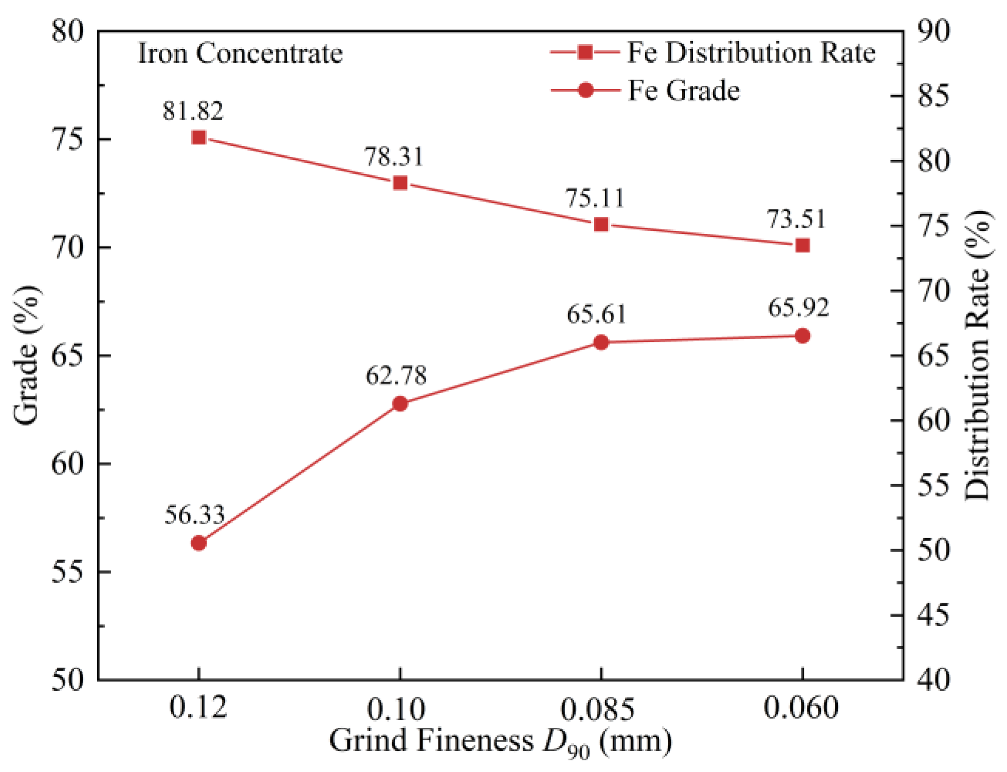 3.2. Roasted Ore Grinding Magnetic Separation Test