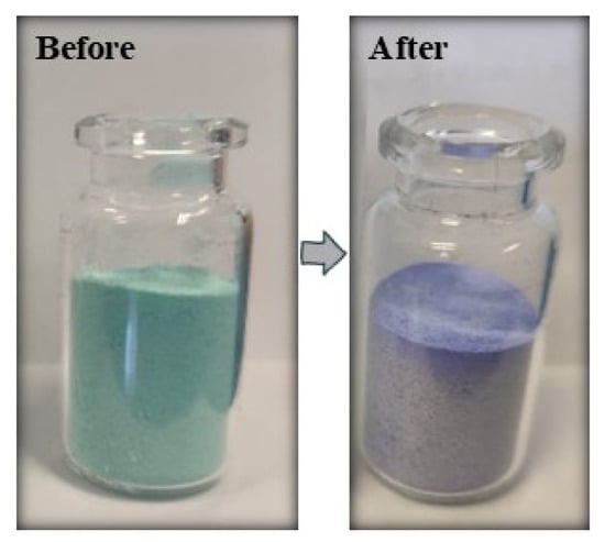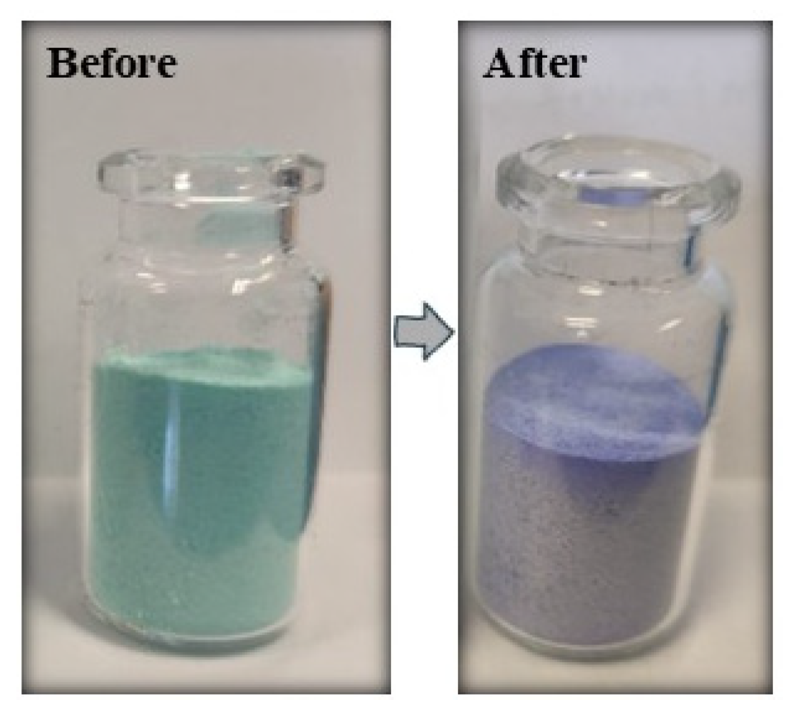 Figure 2. Color change in the BMOF2 composite before and after activation.
