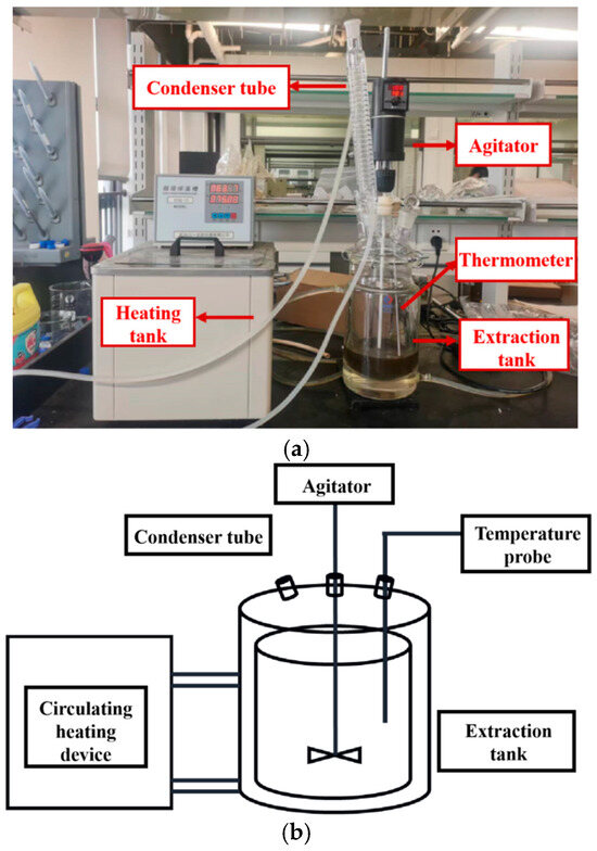 Ginkgo leaf extraction process equipment diagram. (a) Physical diagram of Ginkgo biloba leaf extraction process. (b) Schematic diagram of Ginkgo biloba leaf extraction process.