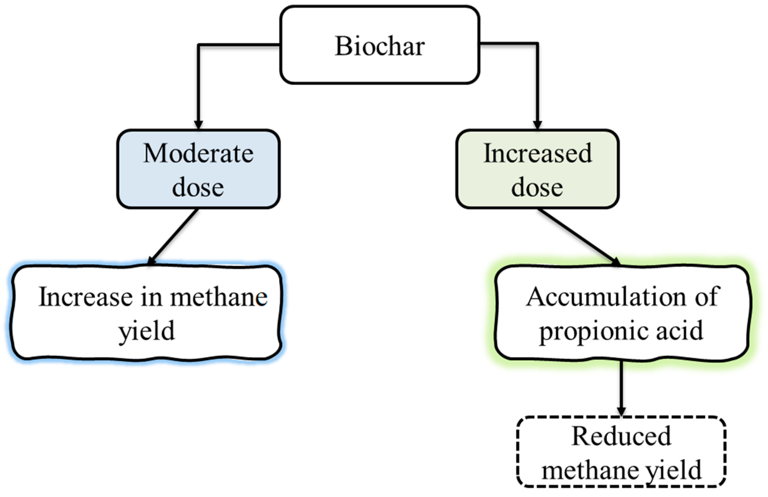| Cornmeal leads | 500 °C | 66 g/L | Biochar enhanced methane production by up to 26.2% | Zhou et al., 2020 [61] |