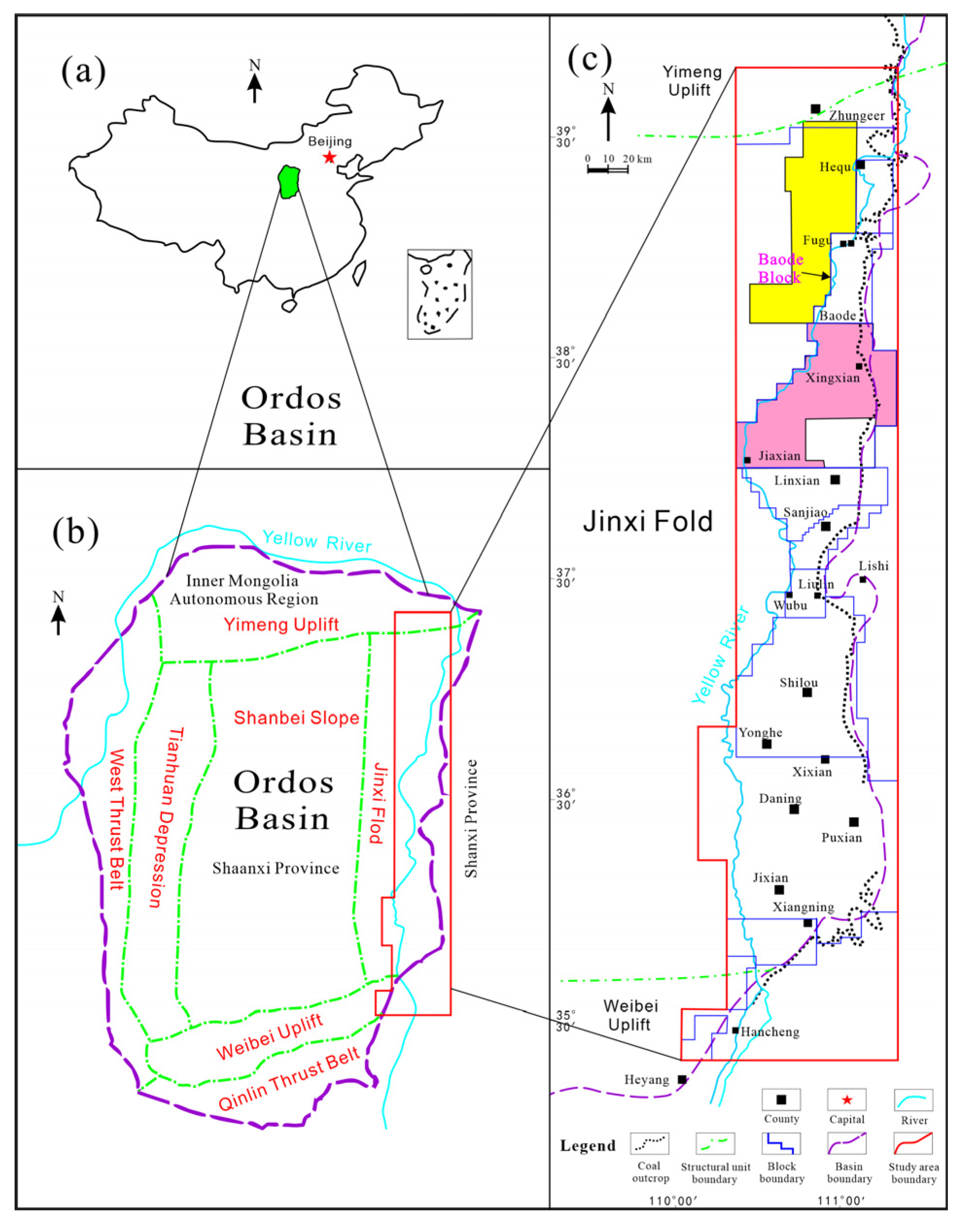 - Xu, C.G.; Ji, H.Q.; Wang, C.W.; Zhu, X.S. Enrichment patterns and exploration countermeasures of deep coalbed methane in the Linxing-Shenfu block on the eastern margin of the Ordos Basin. Coal Geol. Explor. 2024, 52, 1–11. [Google Scholar]