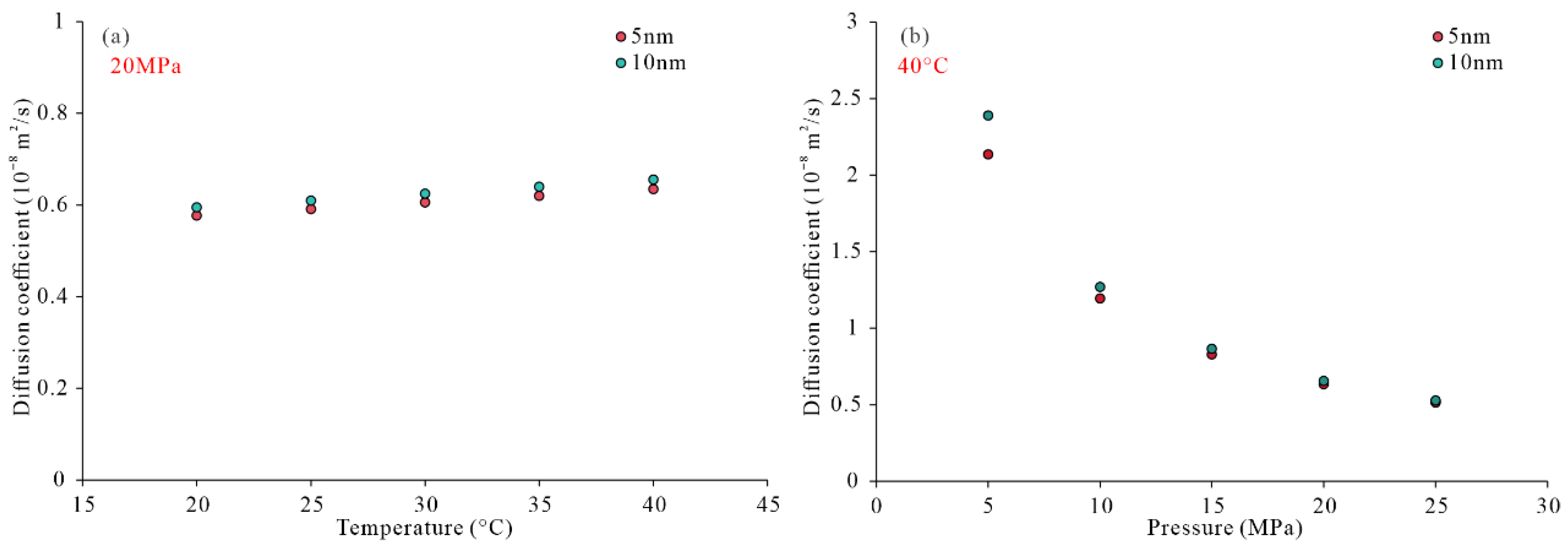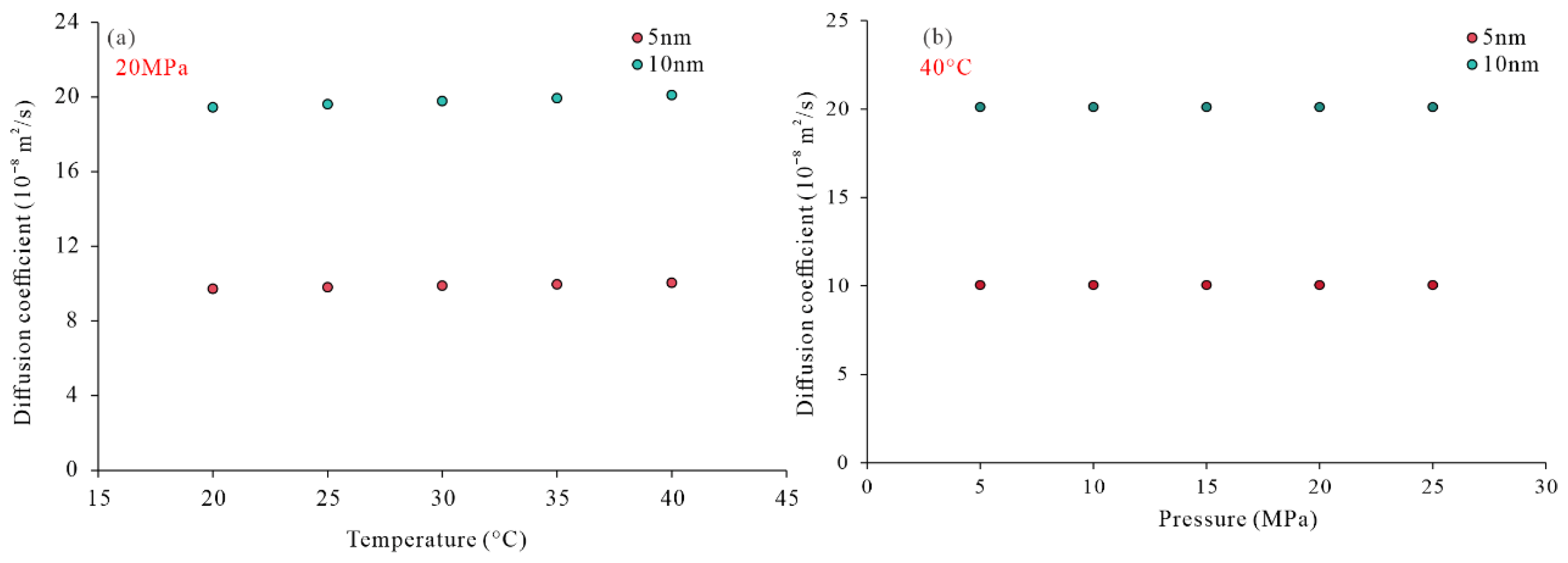 | Temperature °C | Pressure MPa | Different Diffusion Types Affect Pore Diameter (nm) | ||