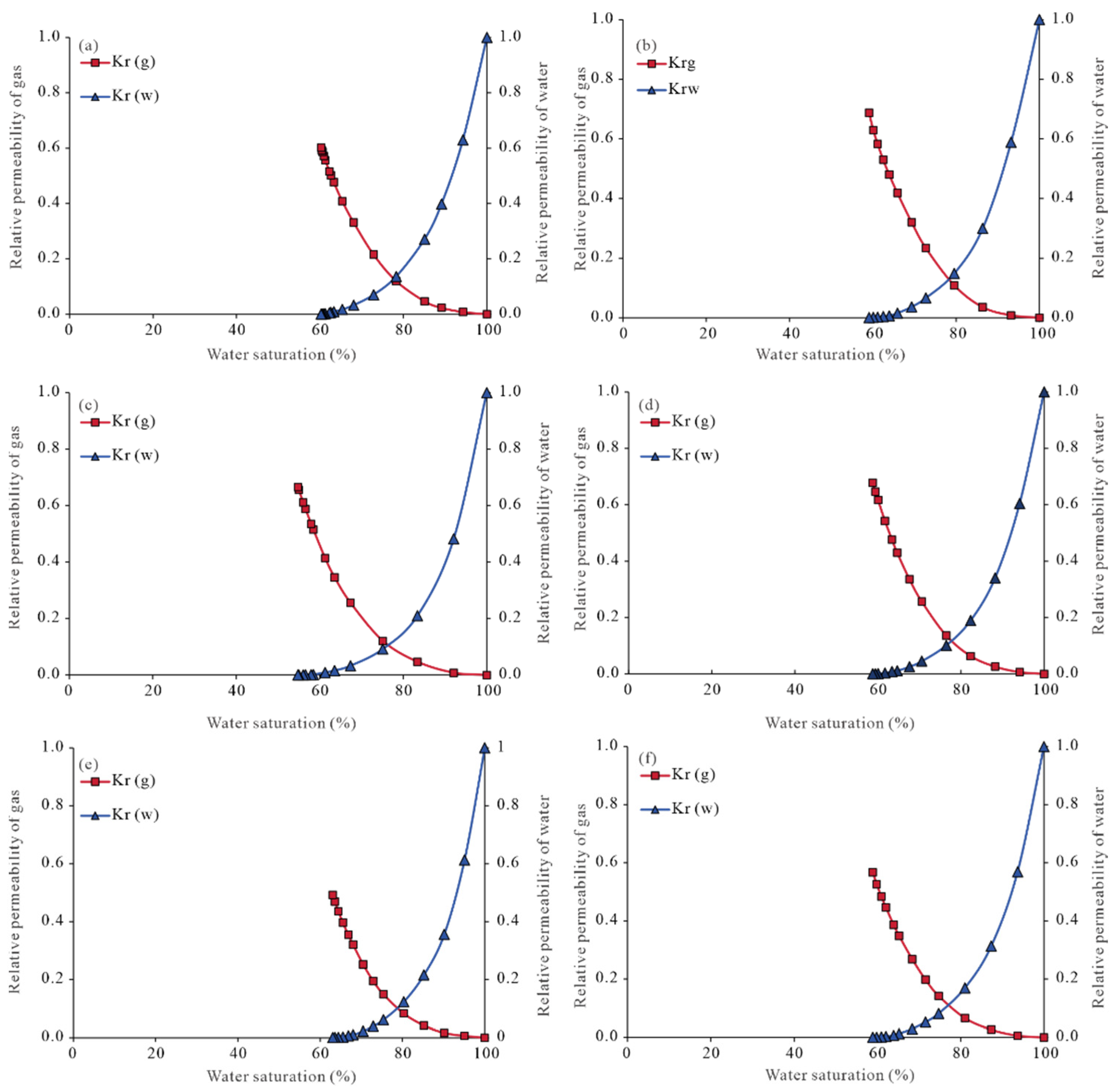 | Sample | Temperature (°C) | Irreducible Water Saturation (%) | Isotonic Point Saturation (%) | Relative Permeability of Gas (mD) | Average Isotonic Point Relative Permeability (mD) | Two-Phase Region Width (%) |