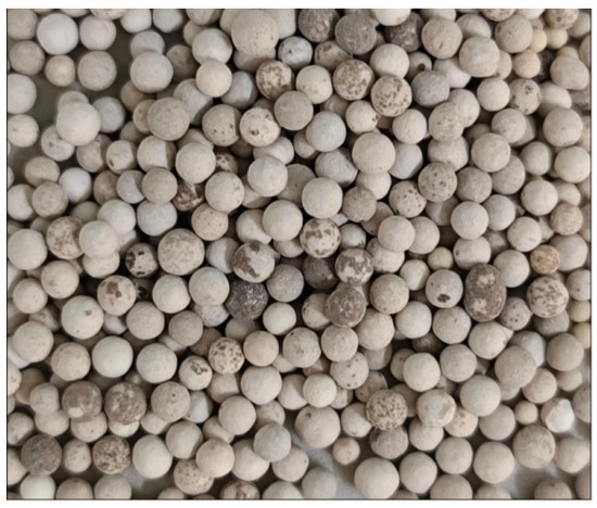 The raw materials for this study were gray spherical platinum-containing spent catalysts supplied by a certain precious metal recycling enterprise in Xuzhou, China, as shown in Figure 2.