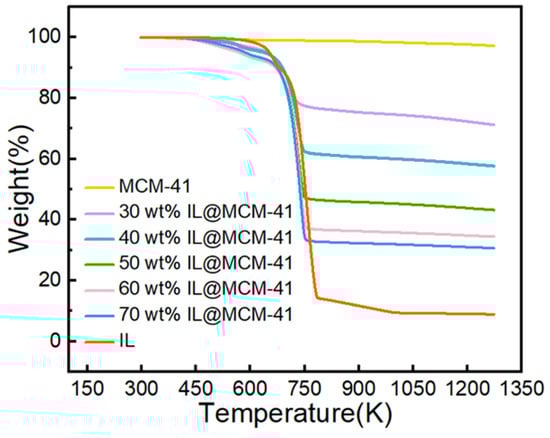 TGA curves of pristine MCM-41 and IL@MCM-41 composites.