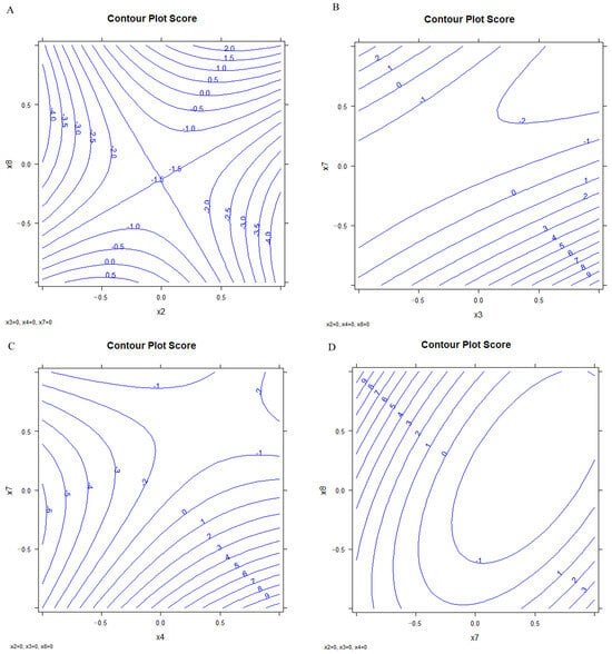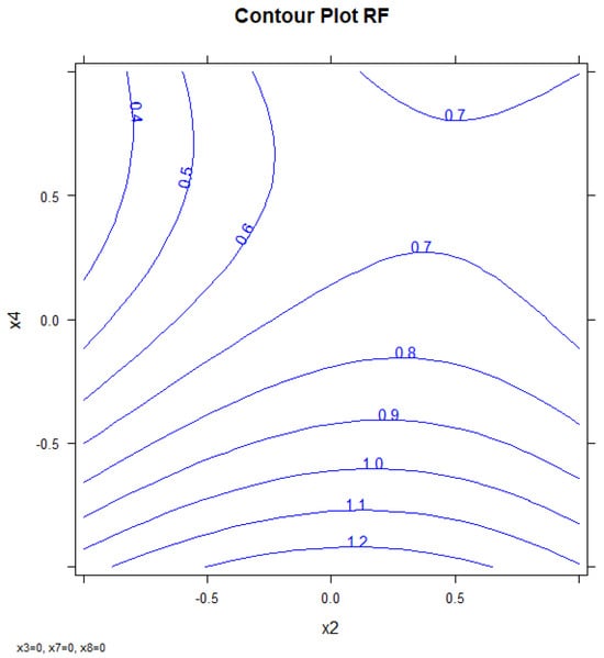 Given the significant interaction between X7 and X8, we decided to further optimize these variables by narrowing their range of variation, as described in Section 3.1.2. This approach allowed a more precise assessment of their combined effect on the response.