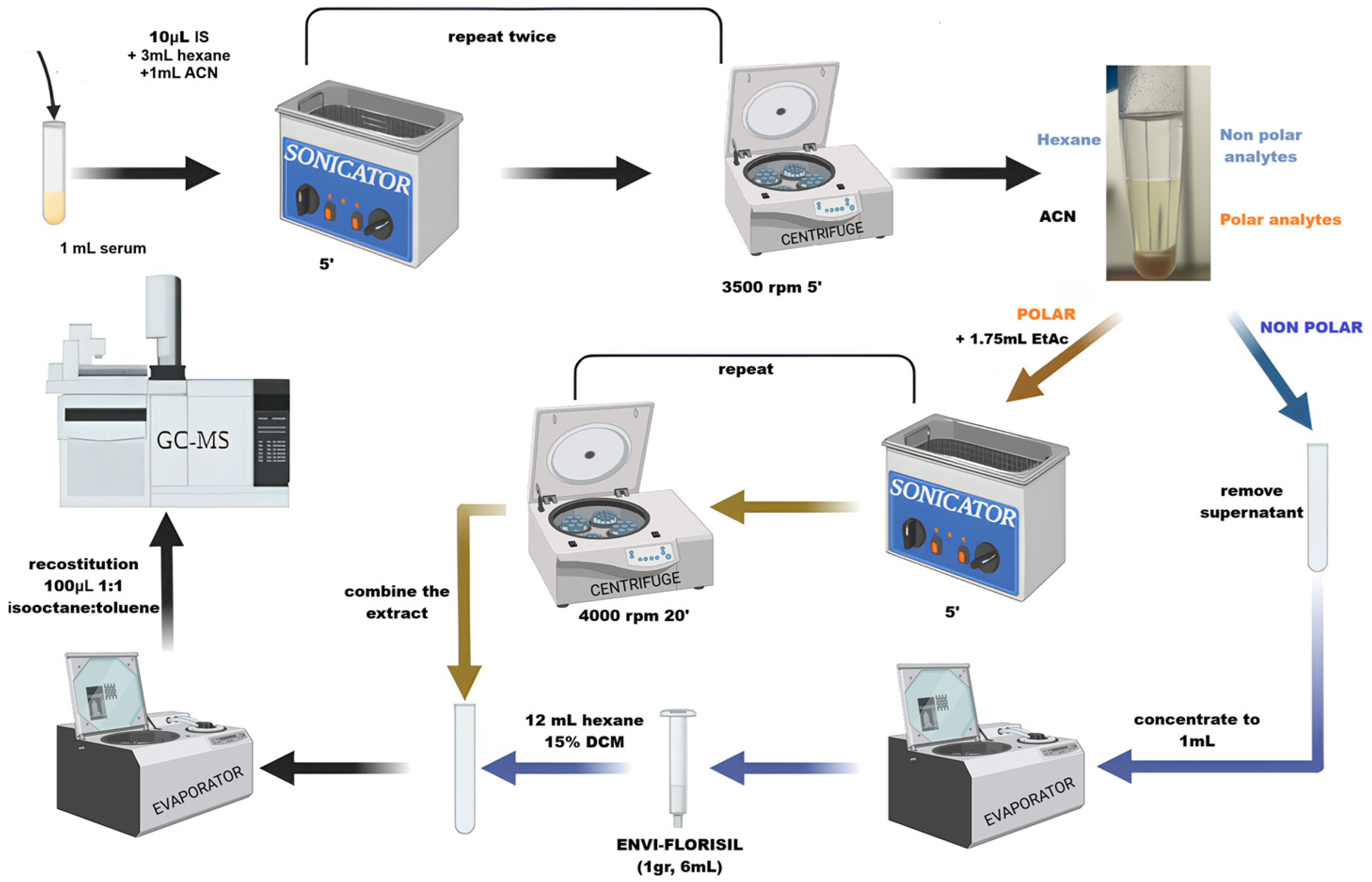 - EtAC extract was reconstituted in 400 μL of 1:1 isooctane/toluene mixture and used to reconstitute the dryness hexane extract.