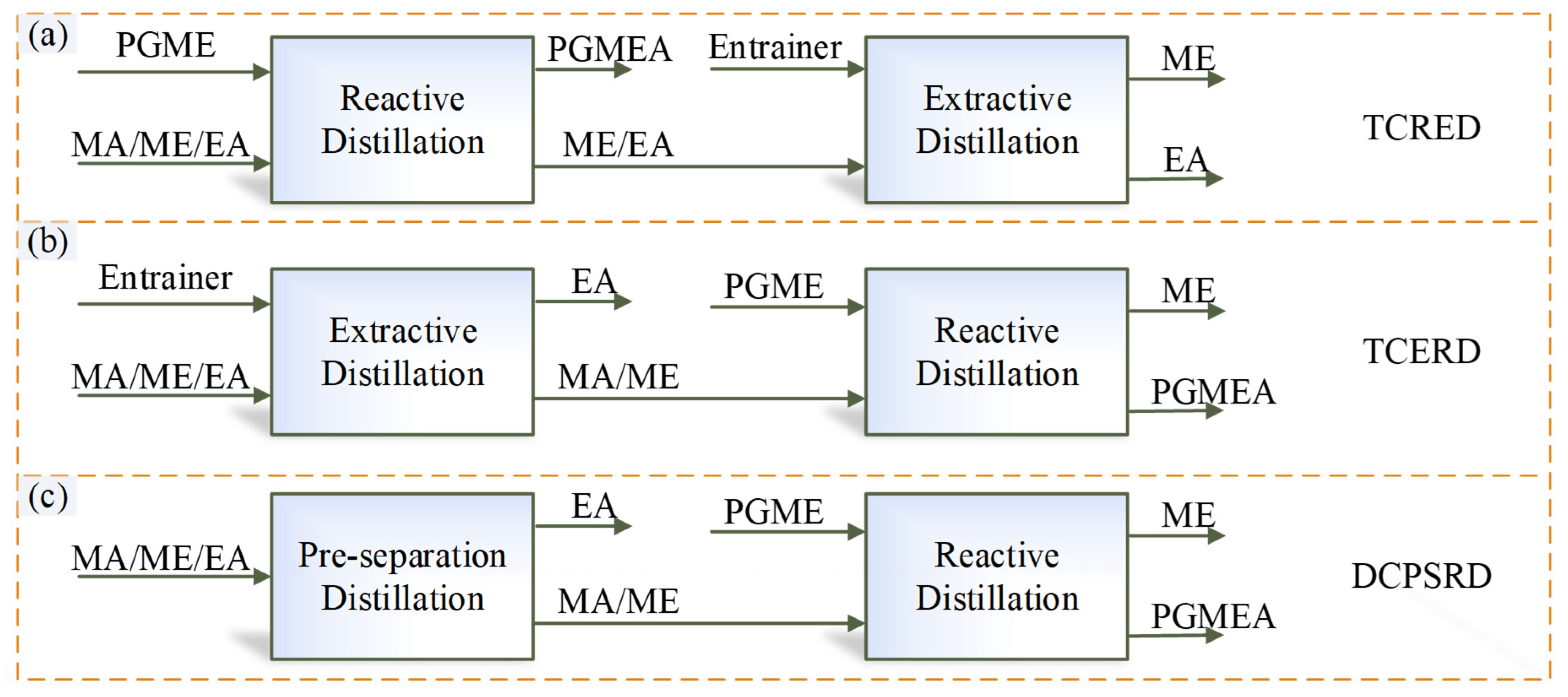 | ME | Methanol | TCRED | Triple-column reactive–extractive distillation |