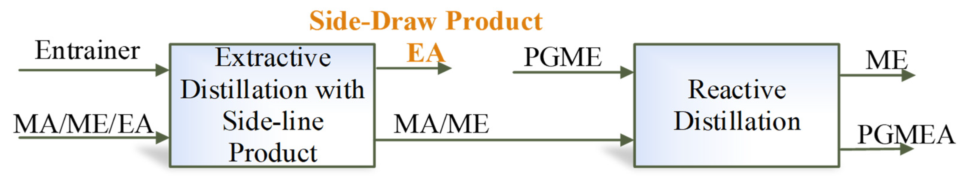 - Kong, Z.Y.; Sunarso, J.; Yang, A. Recent progress on hybrid reactive-extractive distillation for azeotropic separation: A short review. Front. Chem. Eng. 2022, 4, 986411. [Google Scholar] [CrossRef]