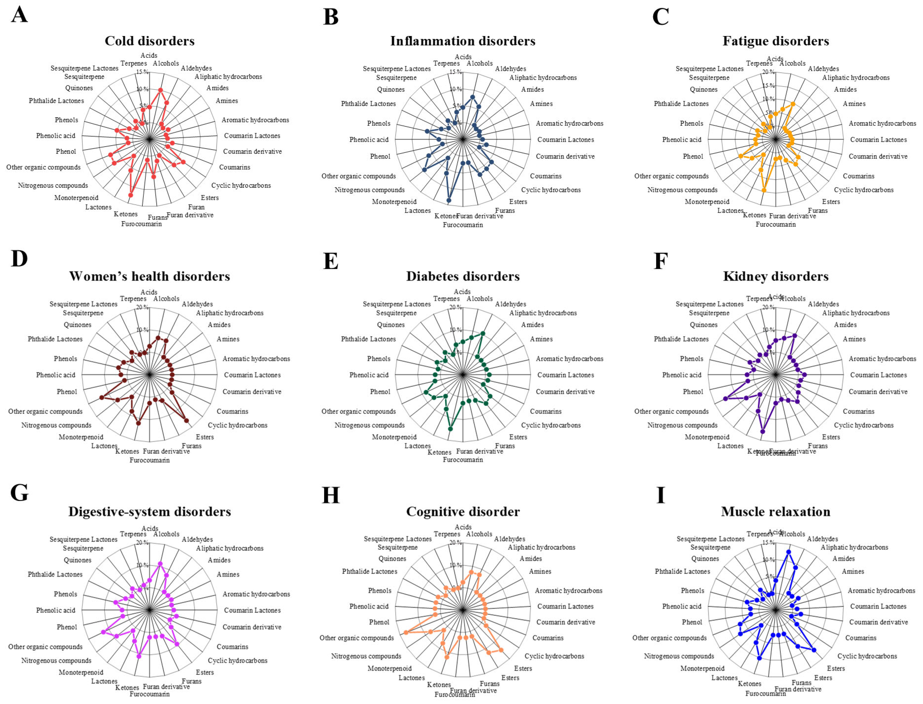 3.7. Other Functional Prescriptions (Cognitive Disorder, Digestion and Muscle Relaxation)