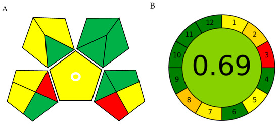 Greenness evaluation of the SD–DLLME–HPLC–UV procedure. (A) Green Analytical Procedure Index (GAPI) and (B) Analytical GREEnness (AGREE).
