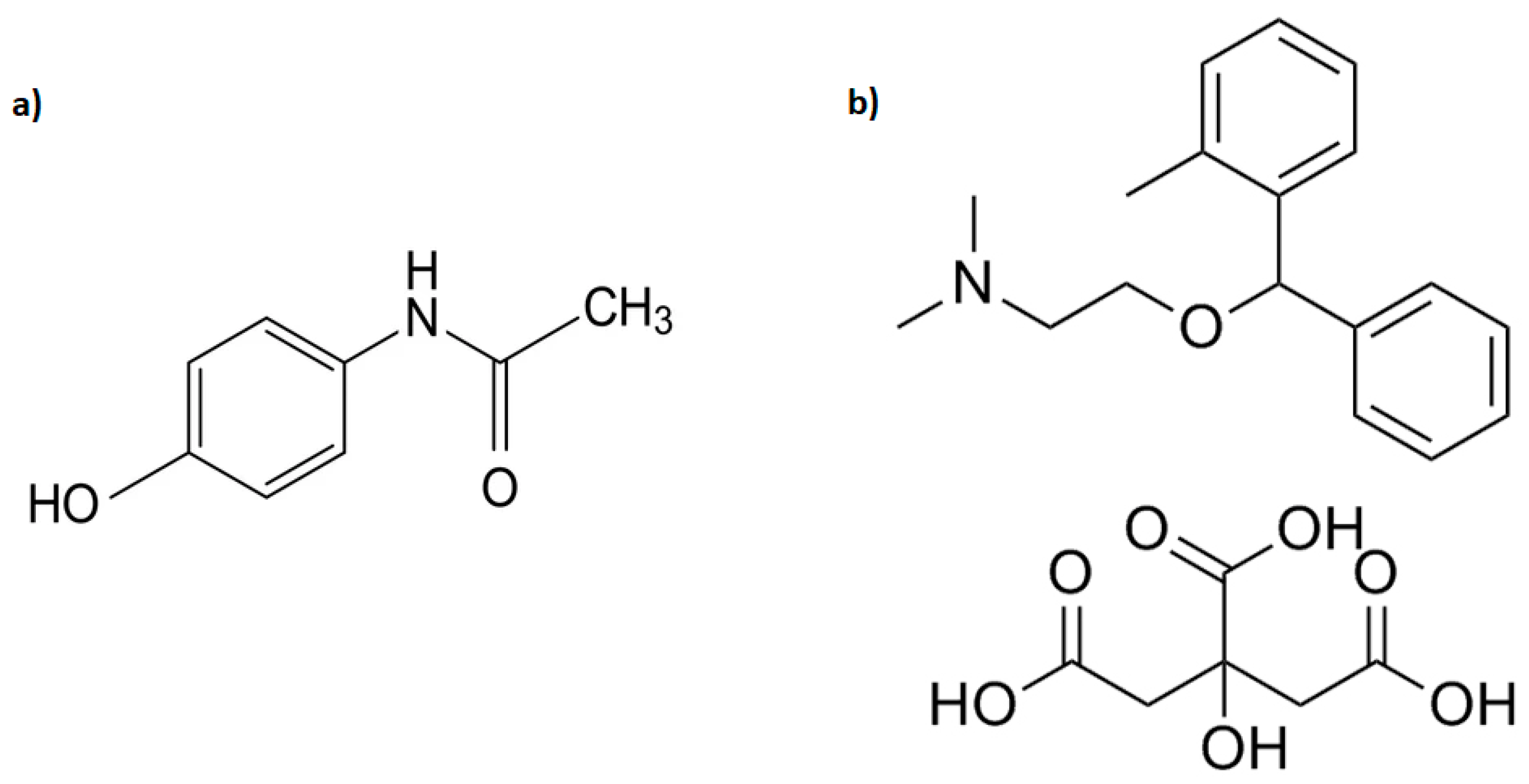 Figure 1a) is a non-opioid analgesic and antipyretic medication in various formulations prescribed or taken over-the-counter (OTC) for the relief of many symptoms like headache, fever, muscle pain and migraine [