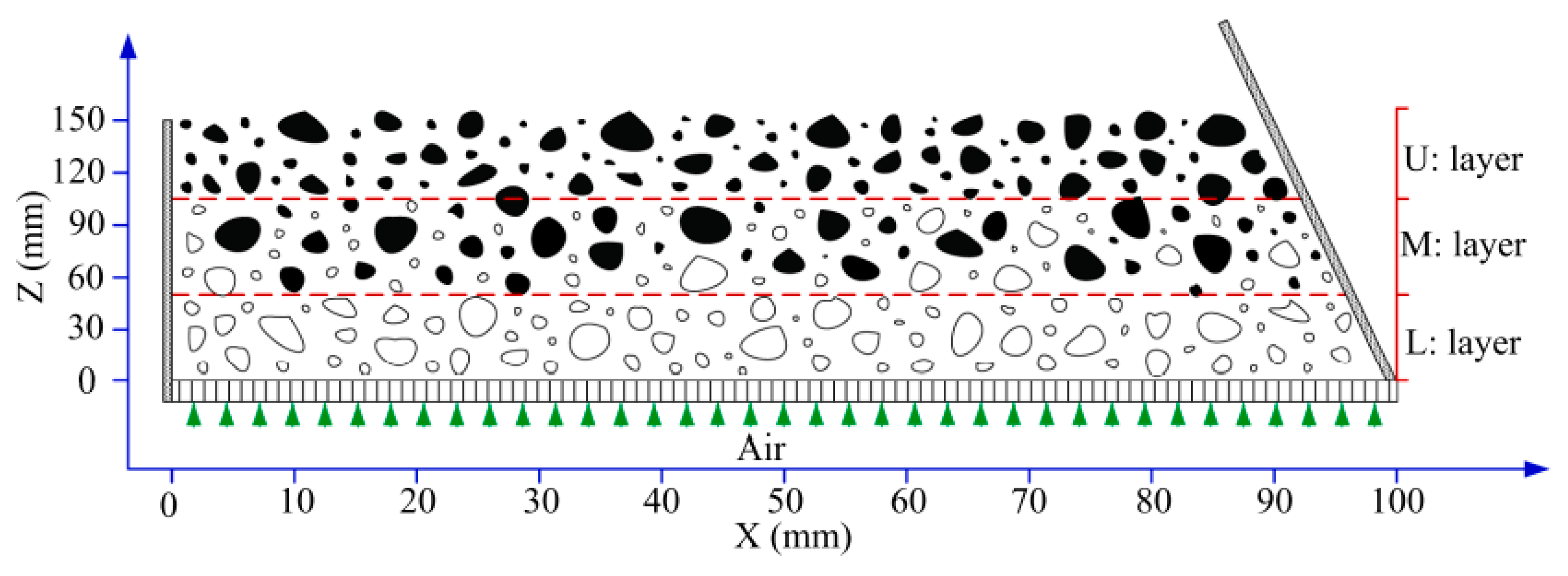 - Lv, B.; Fu, Y.; Luo, Z.; Zhang, B.; Qin, X.; Zhu, X. Moisture transfer of wet coal and its effect on fluidization behavior in a gas–solid separation bed. Powder Technol. 2019, 352, 126–135. [Google Scholar] [CrossRef]